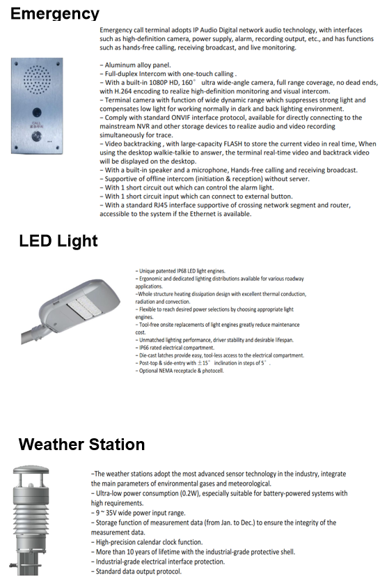 Smart poles can host high-definition surveillance cameras and emergency communication systems to improve public safety and security monitoring. - Environmental Sensors